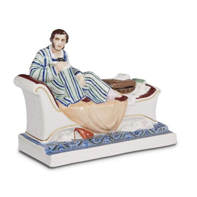 A Soviet porcelain inkwell "Pushkin At Work" Lomonosov State Porcelain Manufactory, Leningrad, 1936-1937