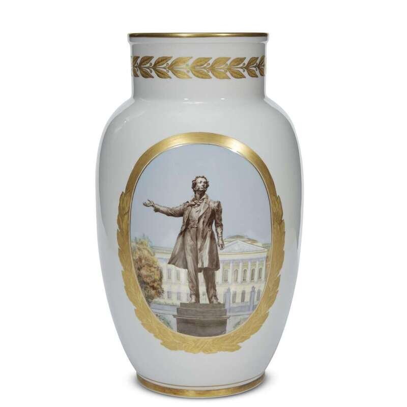 A Soviet porcelain vase "The Monument To Pushkin on Arts Square" Lomonosov State Porcelain Factory, Leningrad, 1958