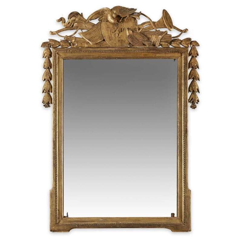 A Louis XVI style carved gesso and giltwood overmantel mirror 19th century