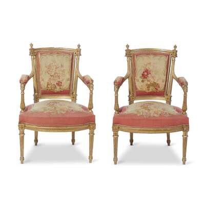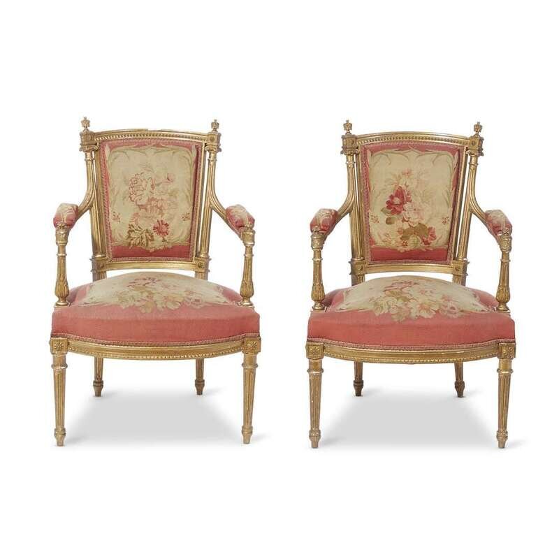 A pair of Louis XVI style giltwood fauteuils 19th century