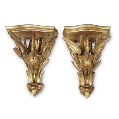A pair of Empire Revival ibis-form carved giltwood wall brackets late 19th/early century