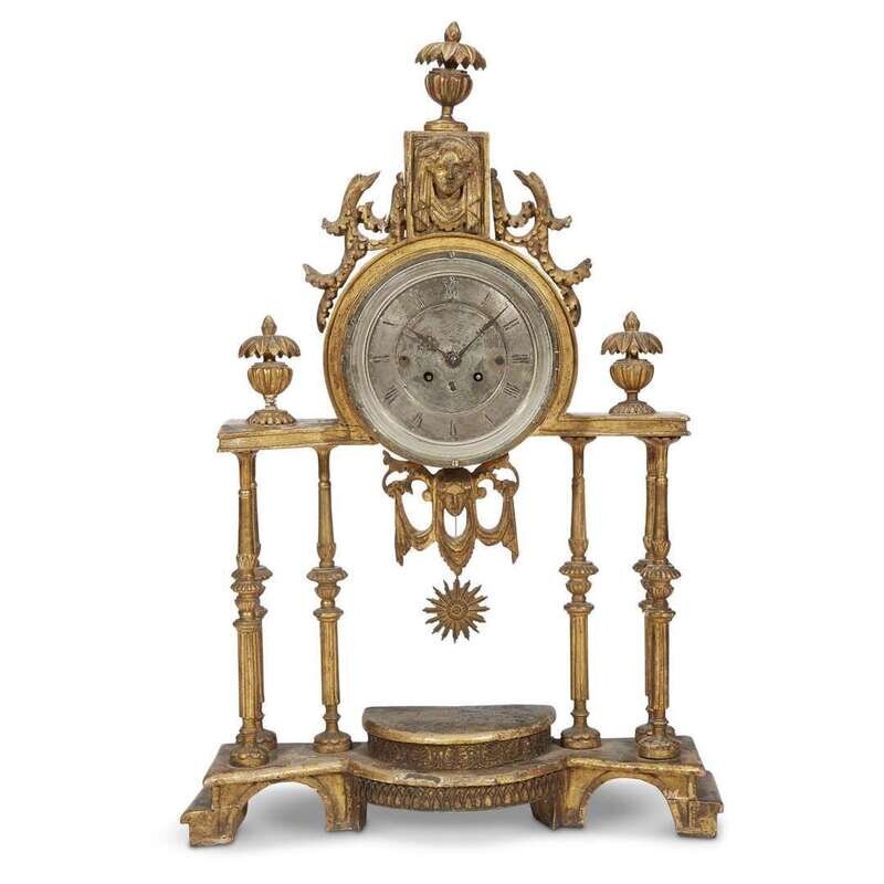 A Charles X carved giltwood portico clock Honoré Pons, Paris, second quarter 19th century