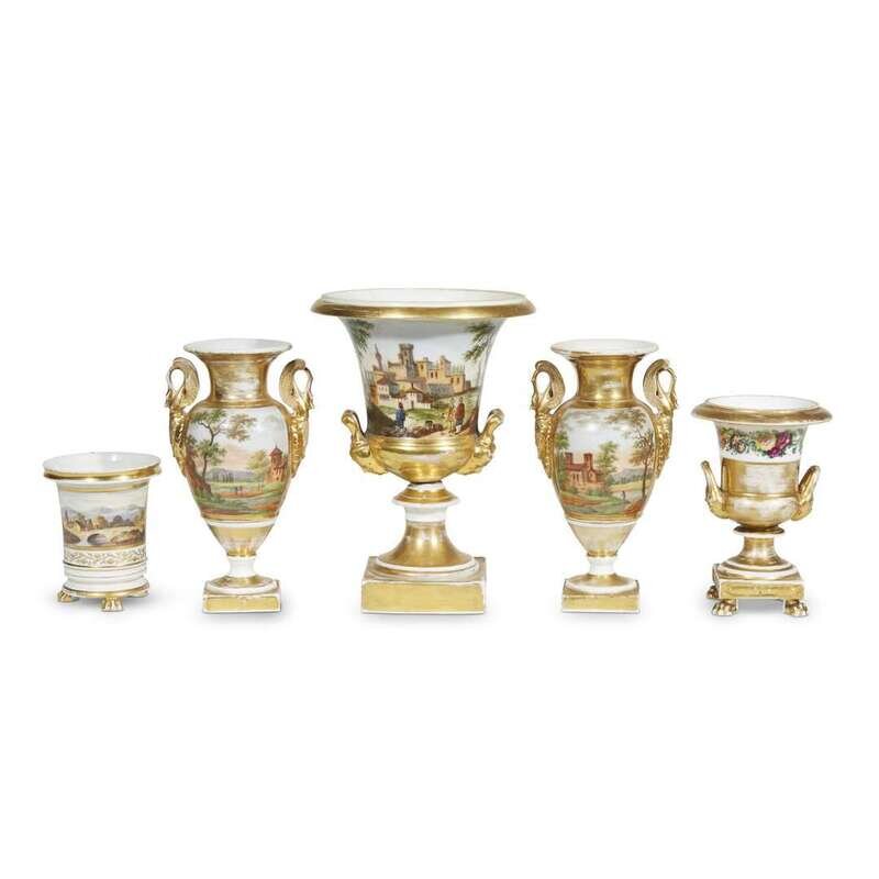 A group of five Paris porcelain Neoclassical style vases second quarter 19th century
