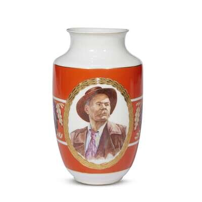 A Soviet porcelain vase "Portrait of Mikhail Gorky" Ukraine, late 1950s