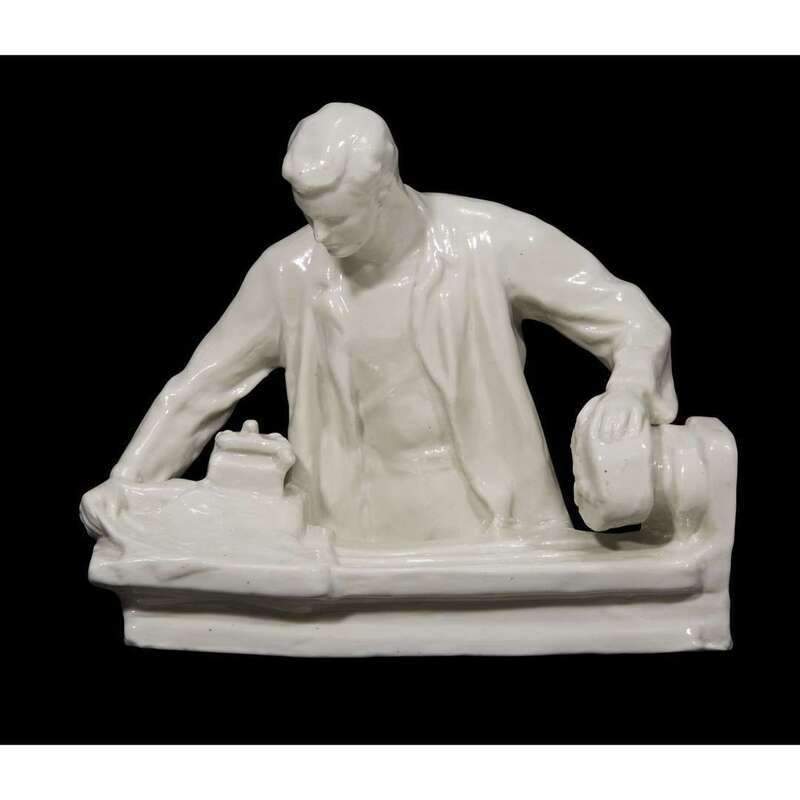 A Soviet porcelain group "Workman at the lathe" attributed to Dulevo Porcelain Manufactory, Dulevo, early 20th century