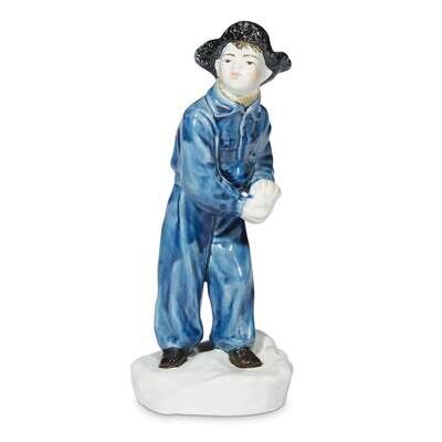 After the 1954 model designed by Maria Petrovna Kholodnaia (1903-1989), depicting a young boy about to throw a snowball, the underside marked '59' with the date '1959' in green, '76' stamped in green, '70' incised in clay, '1 sort' (first quality) stamped in clay on support bar.
