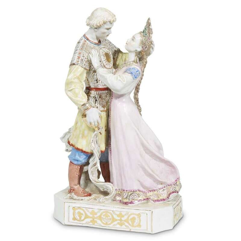 A Soviet porcelain group "Ruslan and Ludmila" likely by the Dulevo Factory, Likino-Dulevo, circa 1950