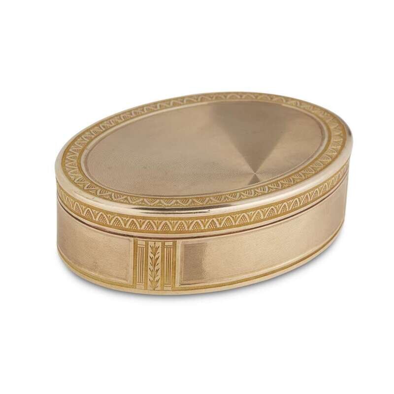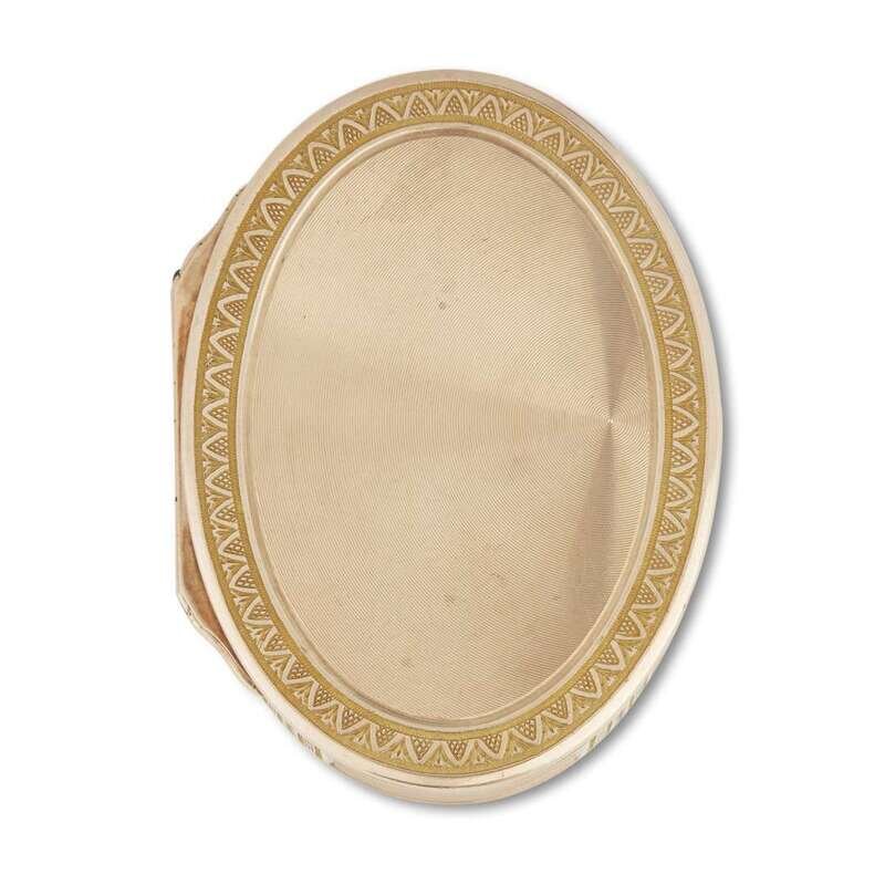 Oval the engine-turned ground banded with acanthus-chased borders, marked inside lid.
