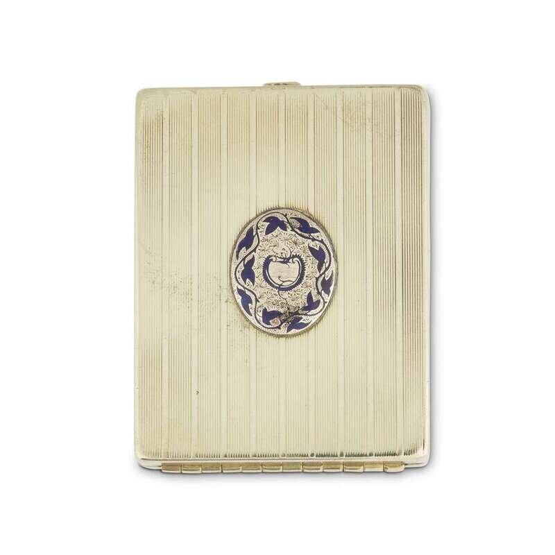An Art Deco 14-karat gold enameled miniature vanity case circa 1930