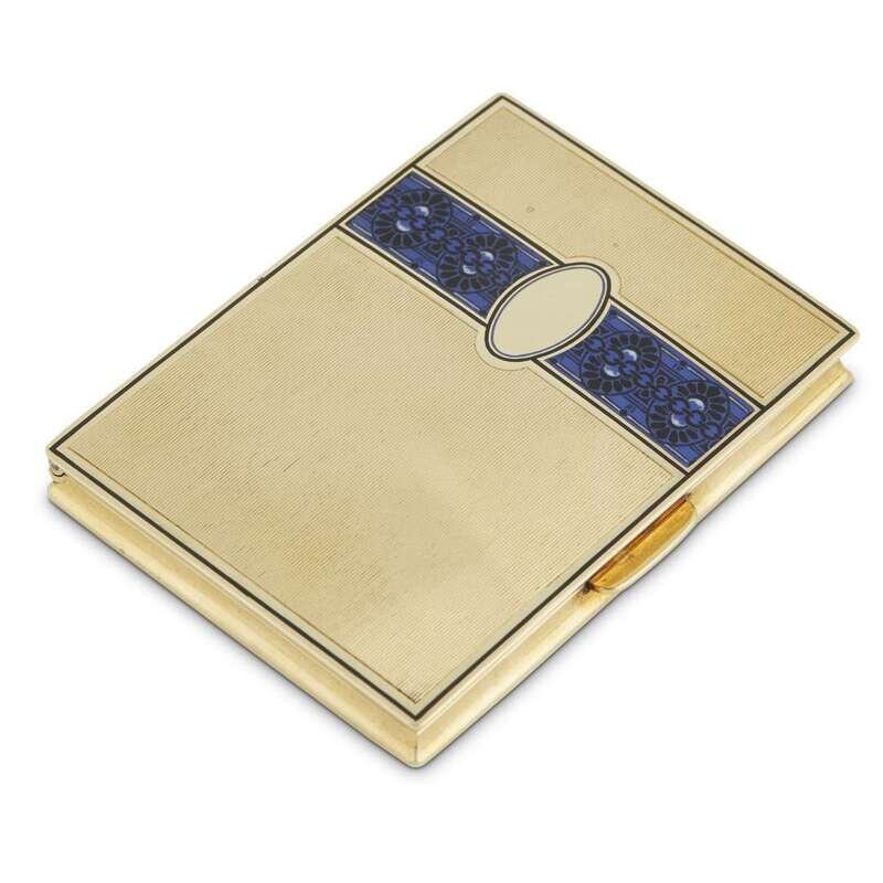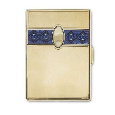 An American Art Deco enameled 14-karat gold card case apparently unmarked, circa 1940