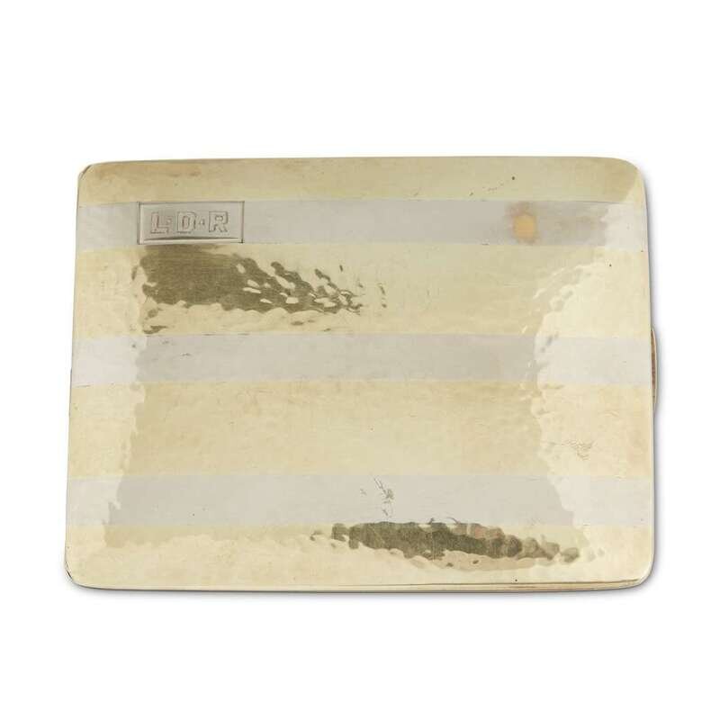 Rectangular and with hammered yellow and white gold alternating stripes, Monogrammed "LDR."