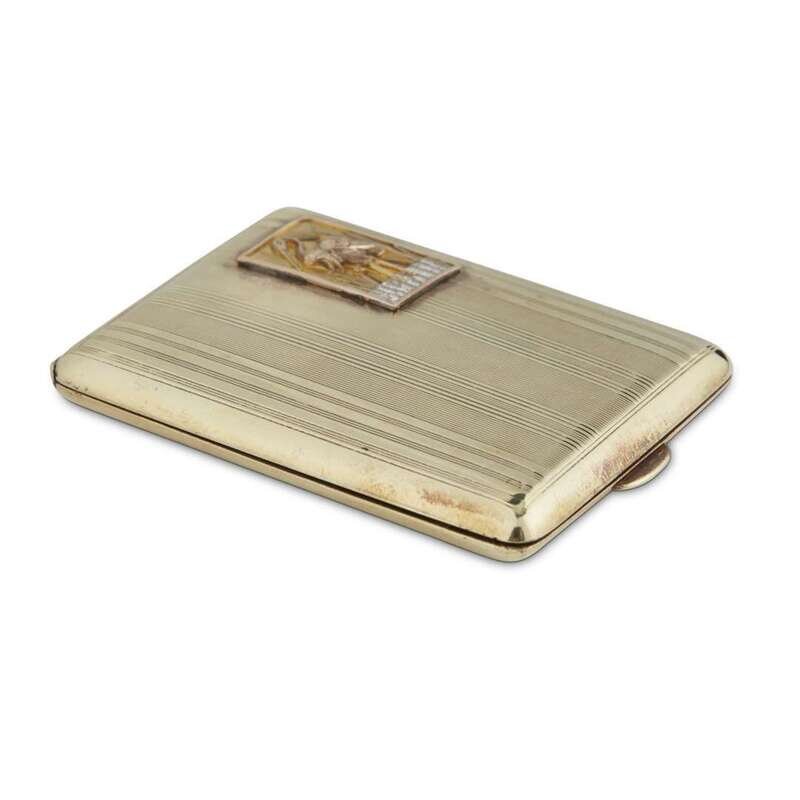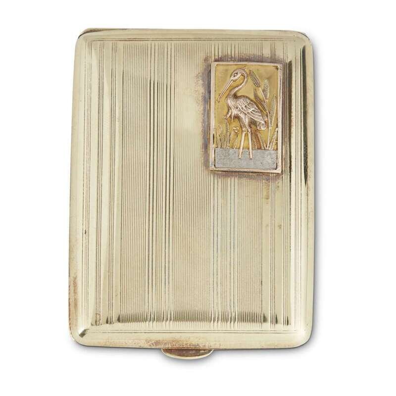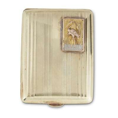 An Art Deco 14-karat gold lady's card case mounted with a stork likely American, circa 1920