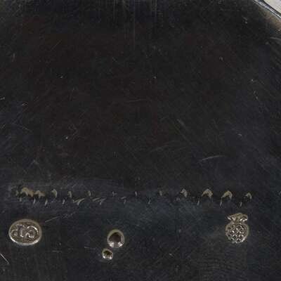 Overall chased and embossed with flowers and foliate arabesques, monogrammed at rim.