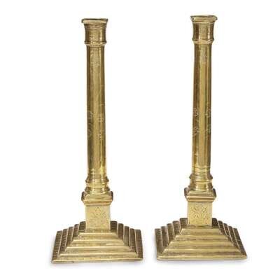 Pair of floral-etched brass candlesticks Continental, 18th century