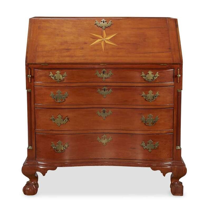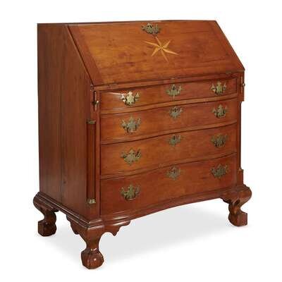 Chippendale cherrywood oxbow slant-front desk probably Connecticut, circa 1780