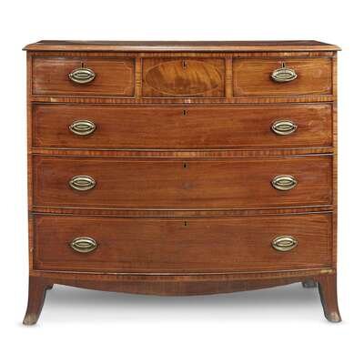 Federal string inlaid mahogany bowfront chest of drawers circa 1800