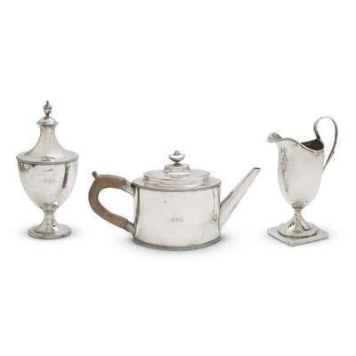 Assembled Federal three-piece coin silver tea service Simeon A. Bayley, New York, NY, circa 1790