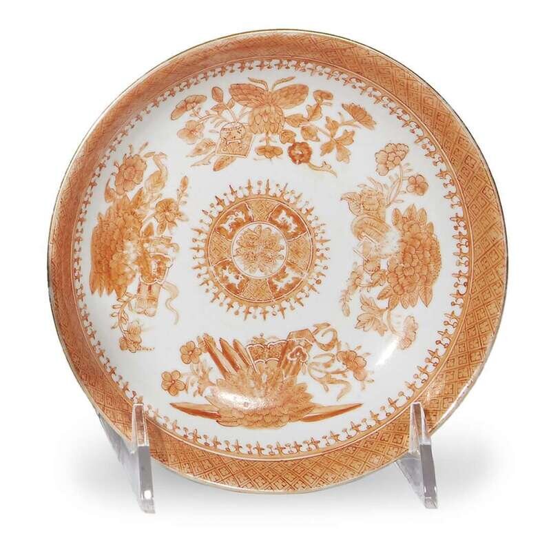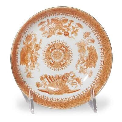 Chinese Export porcelain blue 'Fitzhugh' fruit bowl and an orange 'Fitzhugh' small plate 19th century