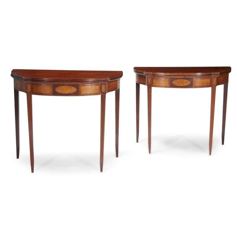 Pair of Federal style inlaid mahogany card tables 19th/20th century