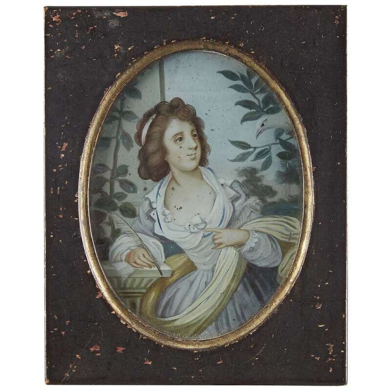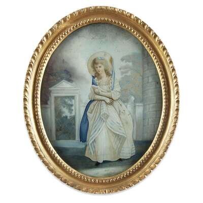 Two China Trade reverse paintings on glass Elegant Western ladies, circa 1800