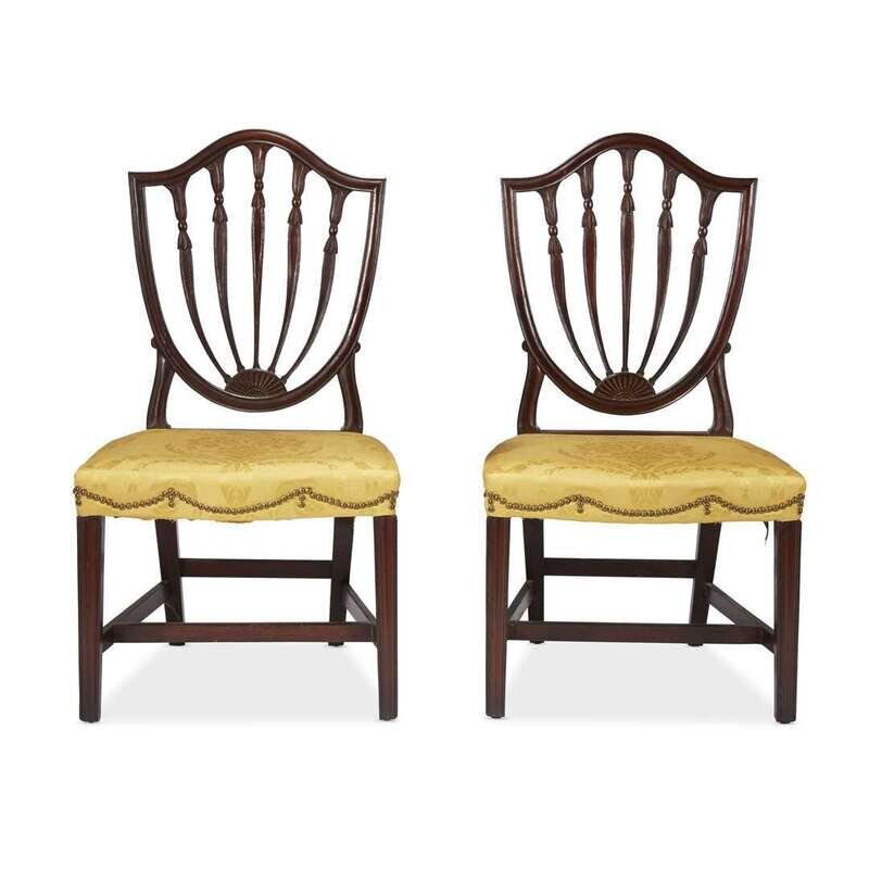 Pair of Federal carved mahogany shield-back side chairs Philadelphia, PA, circa 1800