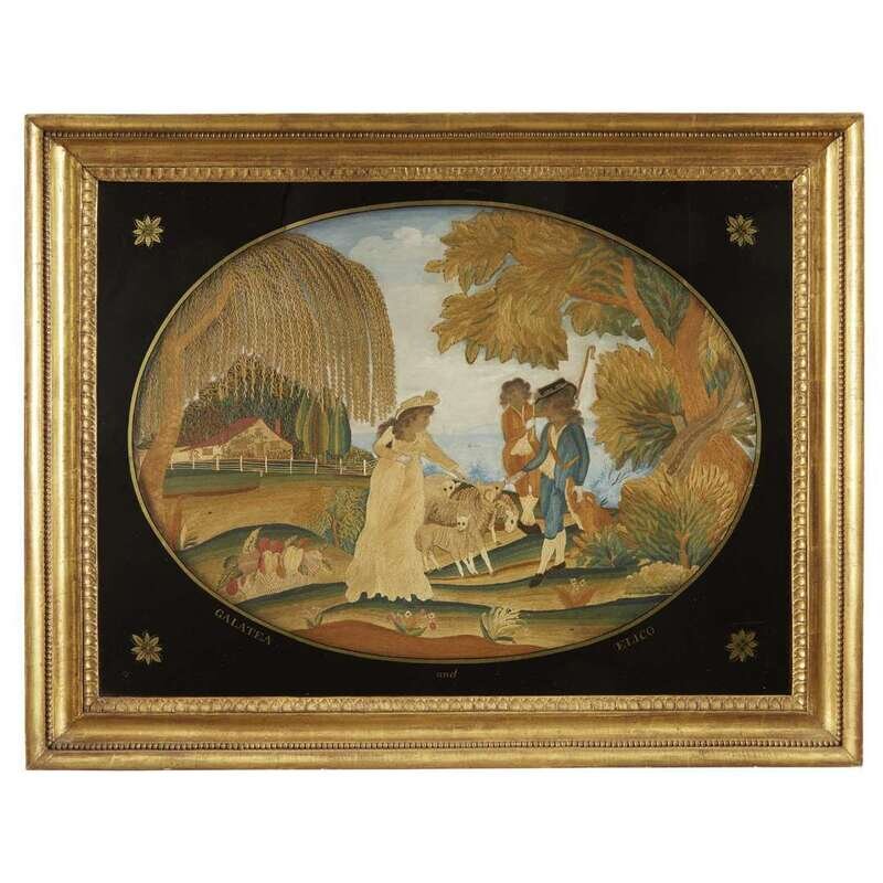 Needlework picture "Galatea & Echo," attributed to the Folwell School, Philadelphia, PA