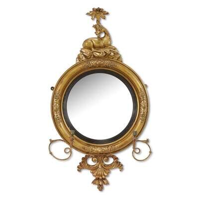 Classical carved giltwood girandole bull's-eye looking glass early 19th century