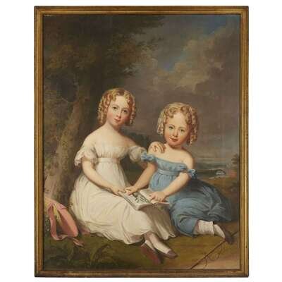 Anglo-American School 19th century Portrait of two little girls