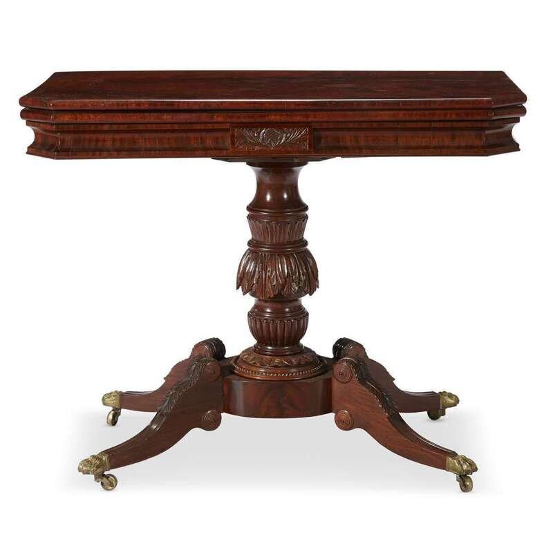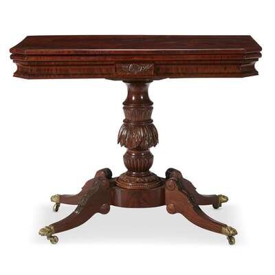 Classical carved and figured mahogany card table New York, NY, circa 1827
