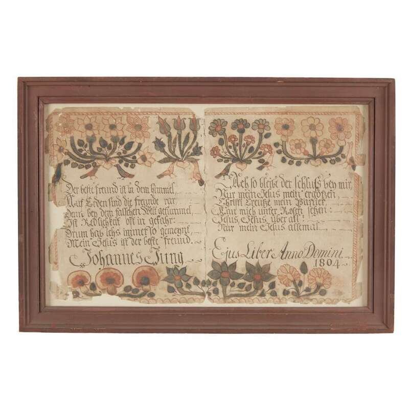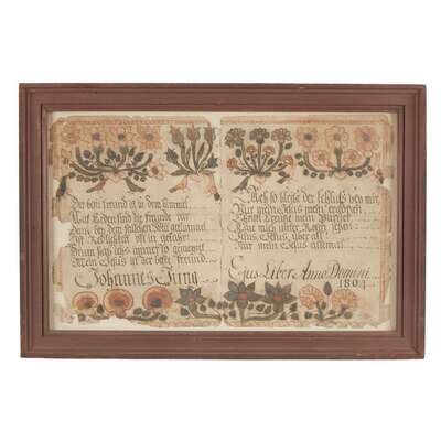 Fraktur: two bookplates for Johannes Jung, 1804 Johannes Ernst Spangenberg (1755-1814), Easton, Northampton County, PA