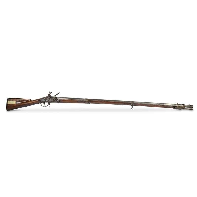 Retains evidence of French arsenal marks on lock and barrel, bears 20th century engraved tag on butt stock, "Simon Ward Bunker Hill June 17th 75."