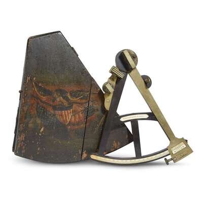 Painted and decorated patriotic octant case and octant Octant bears label of "F. Stoppani London," case bears retailer's
