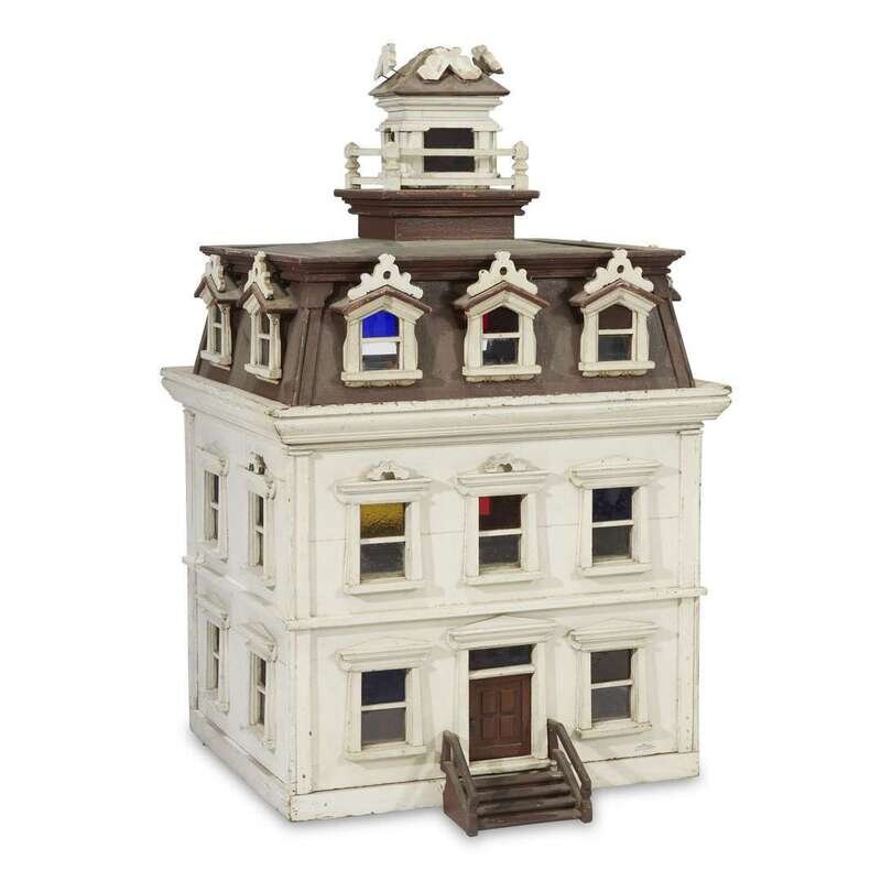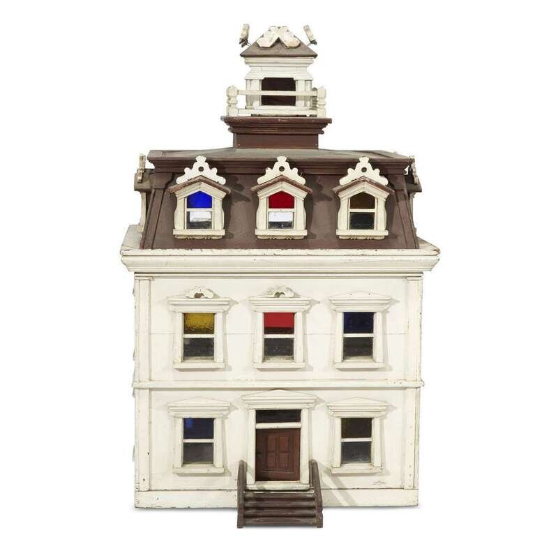 Three-story painted wood Italianate dollhouse probably Philadelphia, PA, circa 1870