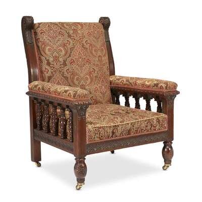 Aesthetic Movement carved walnut upholstered armchair circa 1880
