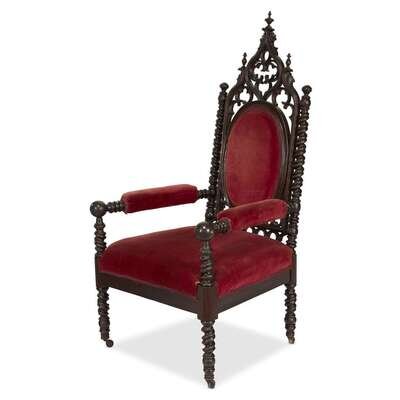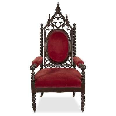 Gothic Revival carved and turned walnut armchair mid-19th century