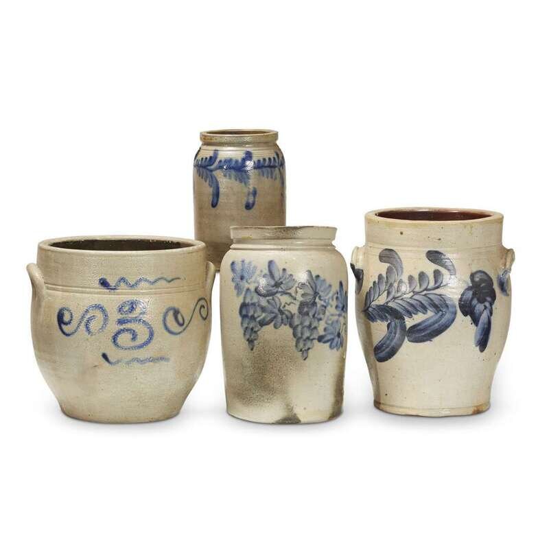 Four cobalt-decorated stoneware crocks Pennsylvania or Mid-Atlantic States, 19th century