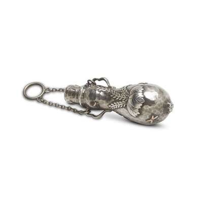 Aesthetic Movement sterling silver and mixed metal gourd-form scent bottle in the Japanesque manner Tiffany & Co., New York, NY, late 19th century