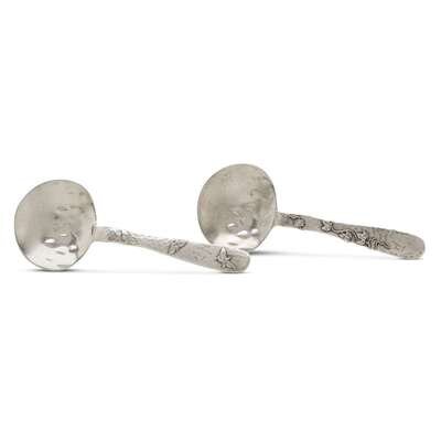 Pair of 'Lap-Over-Edge' Japanesque sterling silver serving spoons Tiffany & Co., New York, NY, circa 1880