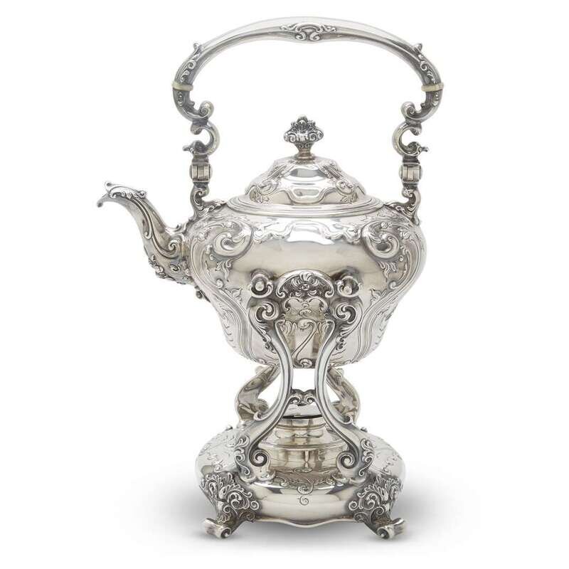 Sterling silver hot water kettle-on-stand J.E. Caldwell & Co., Philadelphia, PA, early 20th century