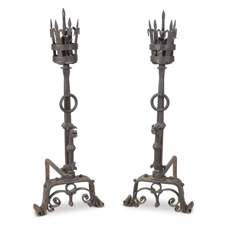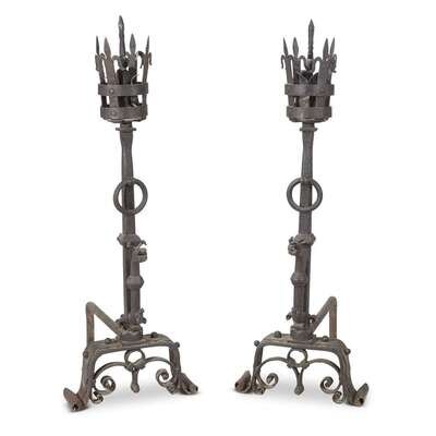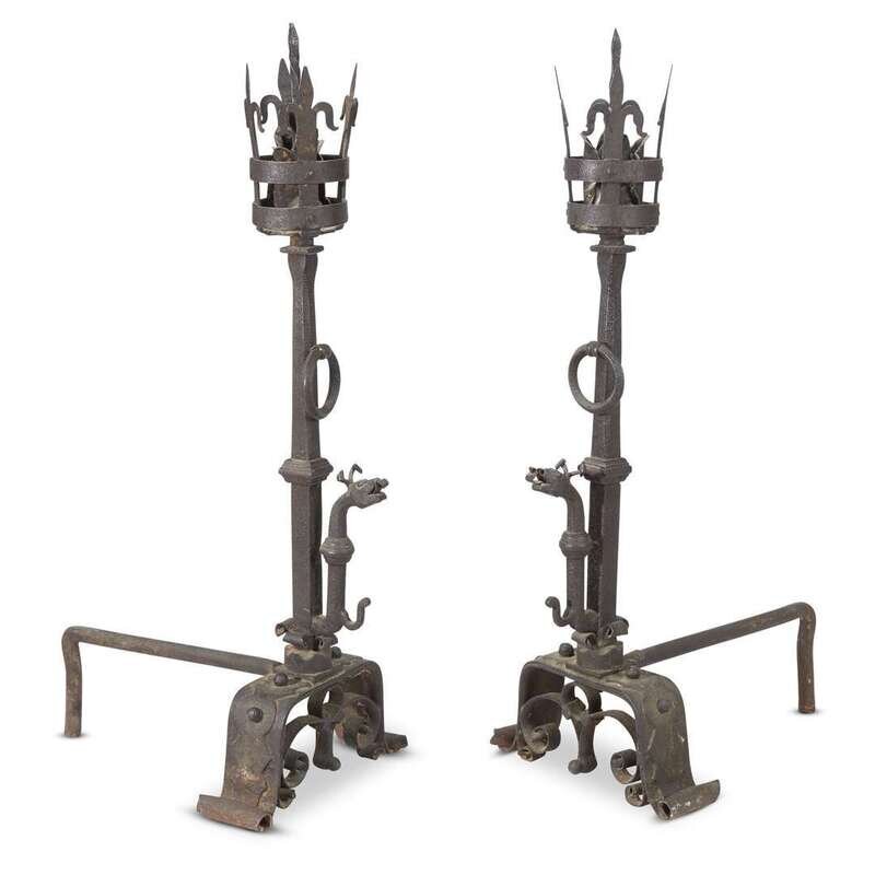 Pair of monumental wrought iron andirons From the Studio and Collection of Samuel Yellin (1884-1940)
