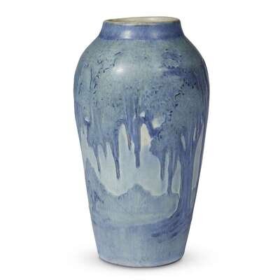 Newcomb College pottery vase Modeler, Joseph Meyer (1848-1931), decorater, Anna Frances Simpson