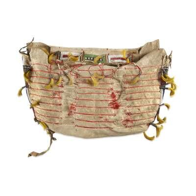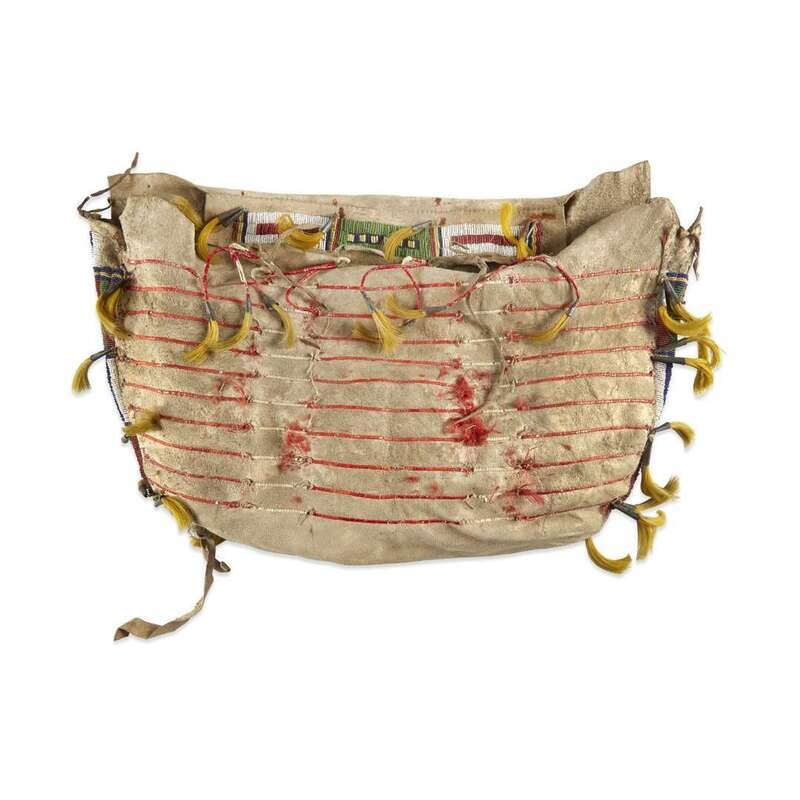 Native American quillworked and beaded hide saddle bag probably Sioux, late 19th century