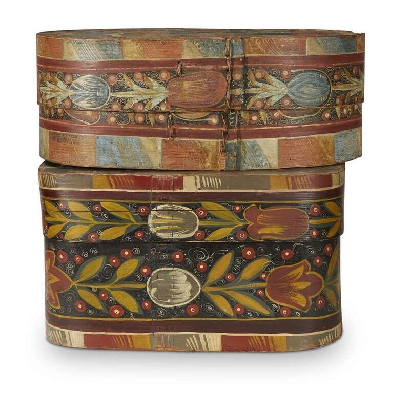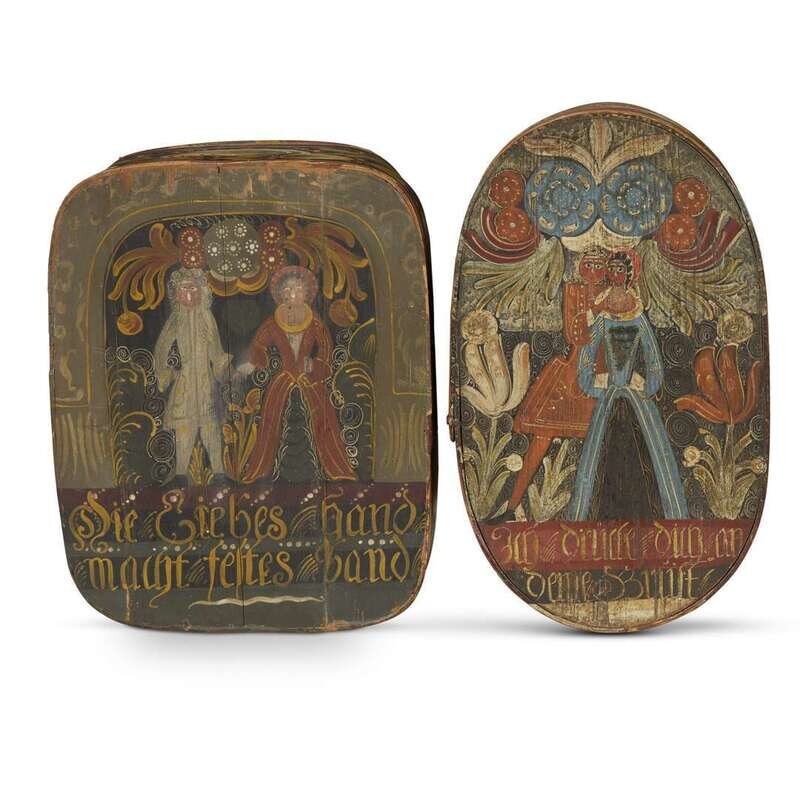 Two painted and decorated bride's boxes Continental, early 19th century