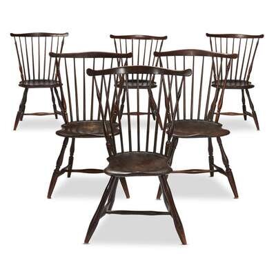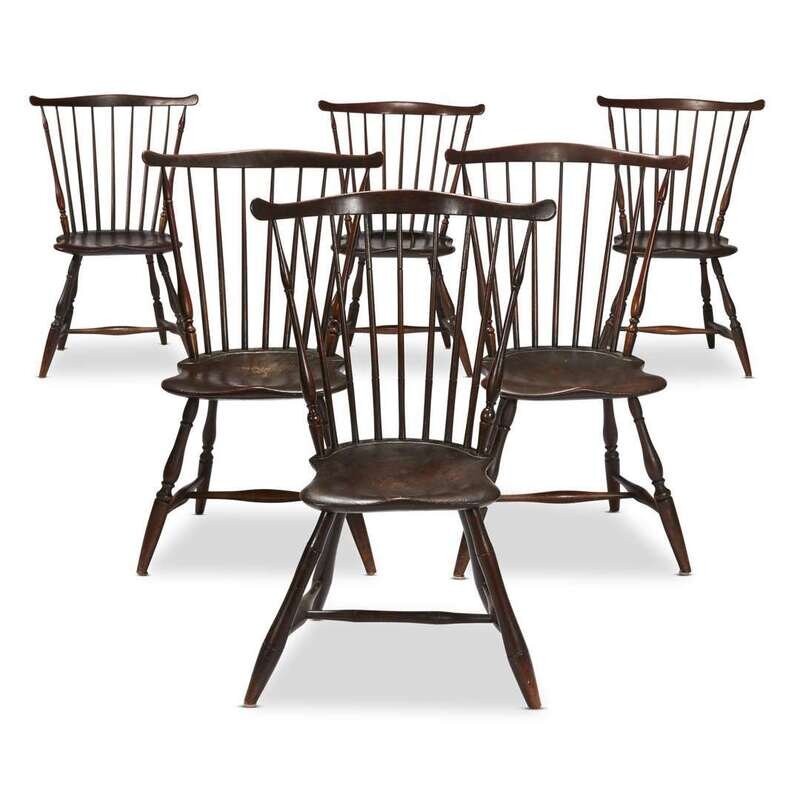 Assembled set of six fan-back Windsor side chairs Philadelphia, PA, late 18th century