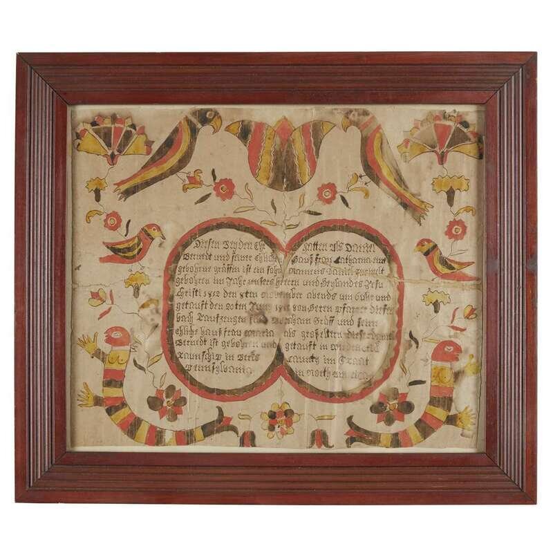 Fraktur: birth record Attributed to the I.T.W. Artist, Berks County, PA, dated 1812