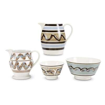Group of four "Earthworm" decorated Mochaware items England, early 19th century