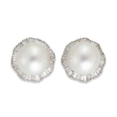 A pair of baroque cultured pearl and diamond earrings