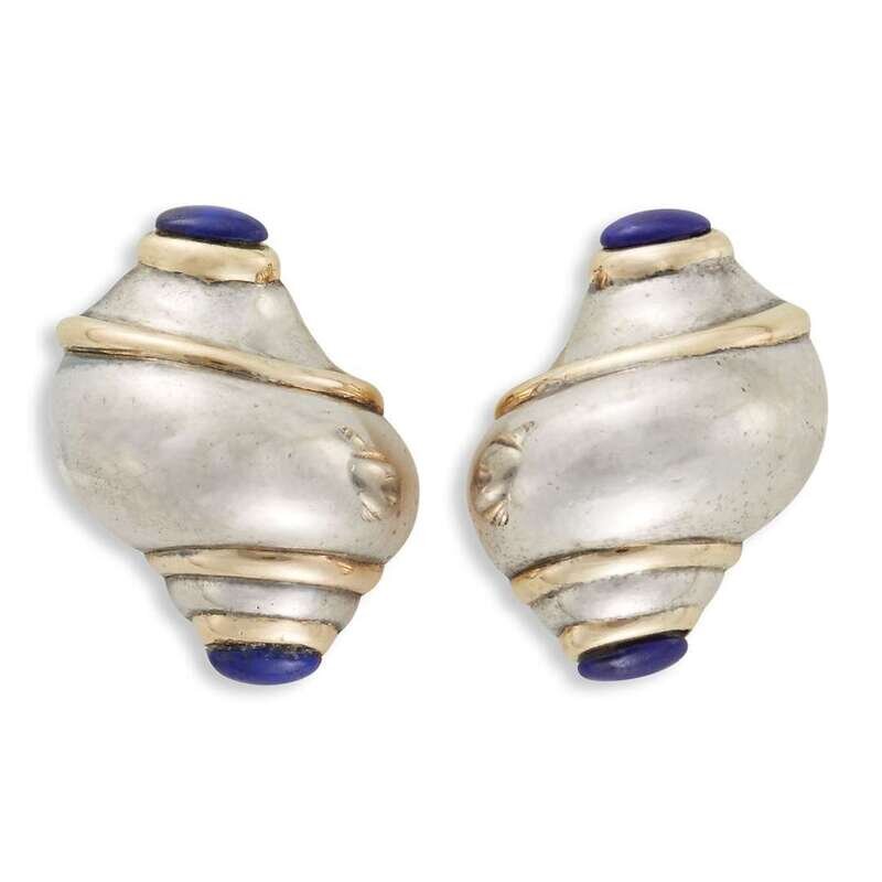 A pair of sterling silver, vermeil and sapphire earrings, Seaman Schepps