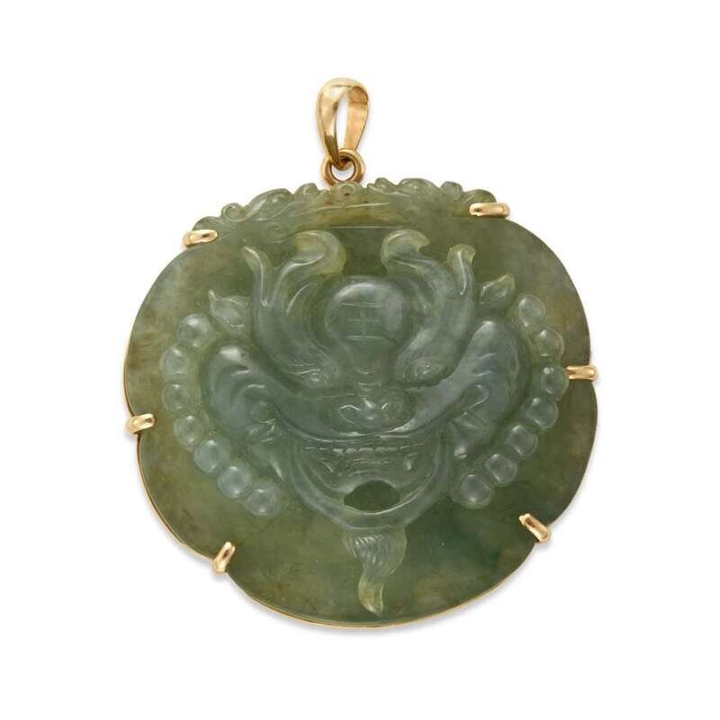 A carved jadeite and gold pendant