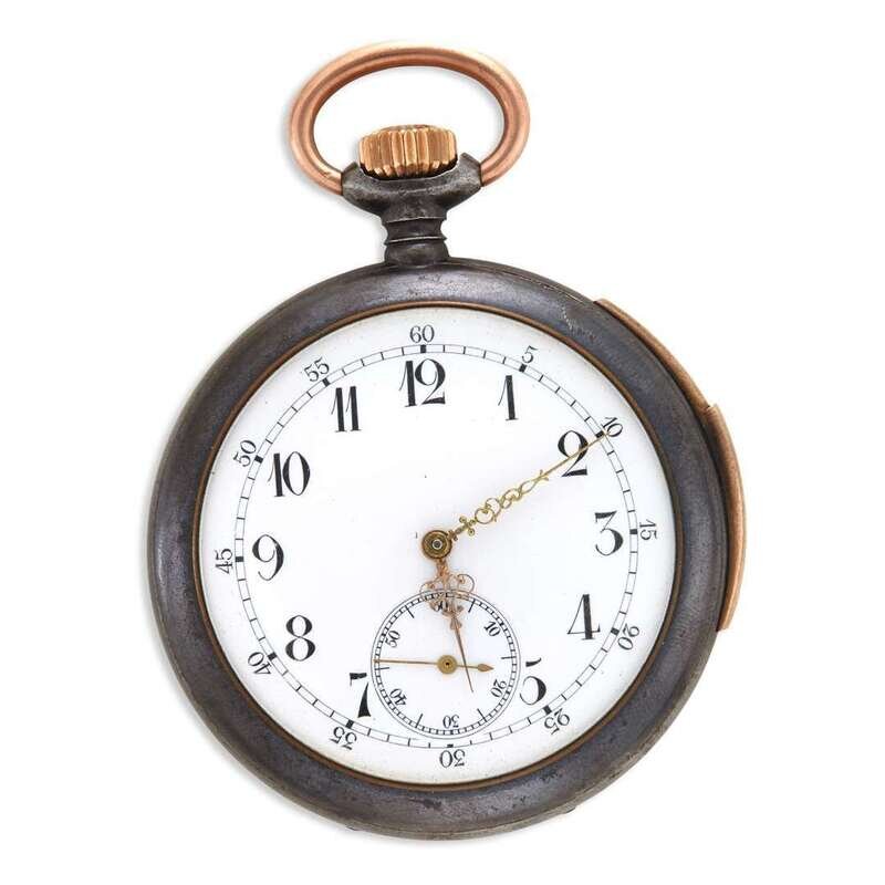 A gun metal steel quarter repeating pocket watch